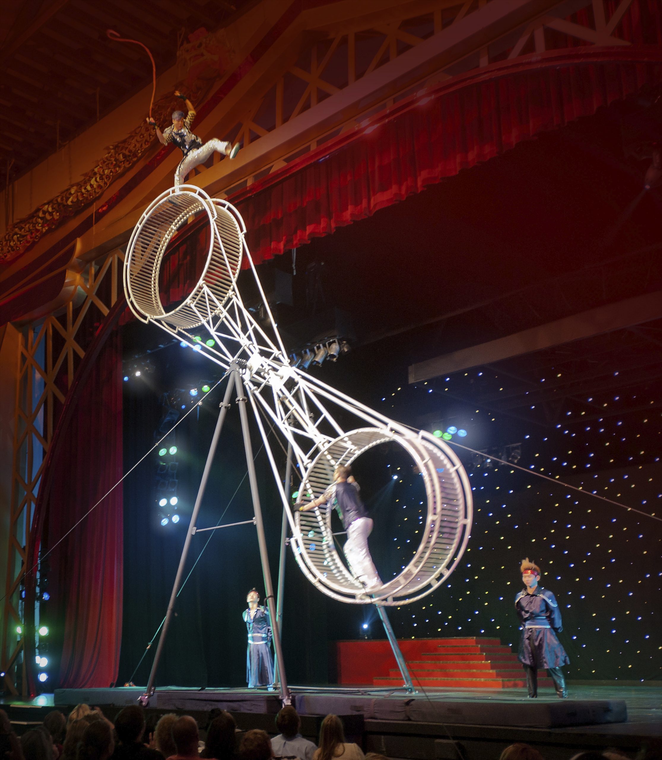 Cirque Shanghai features some of the world’s greatest acrobatic acts including the Wheel of Destiny, the group swinging pole act, and candlelight contortion.
